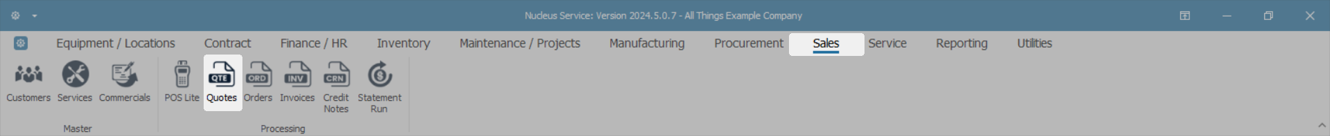 Sales Quotes can be created in Nucleus Service, CRM and Sales Studio.