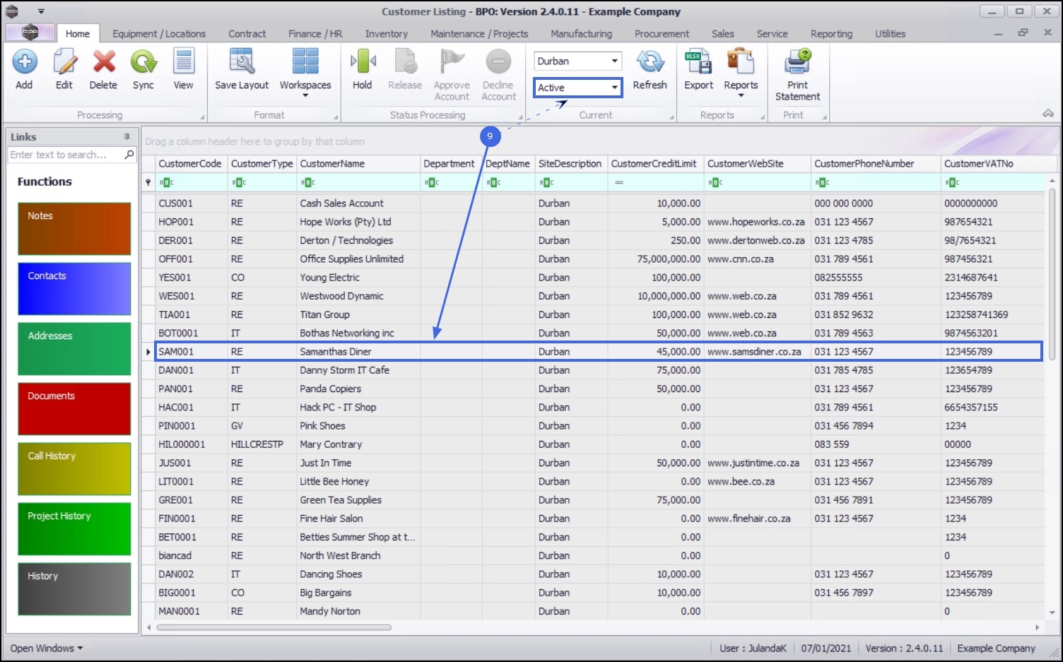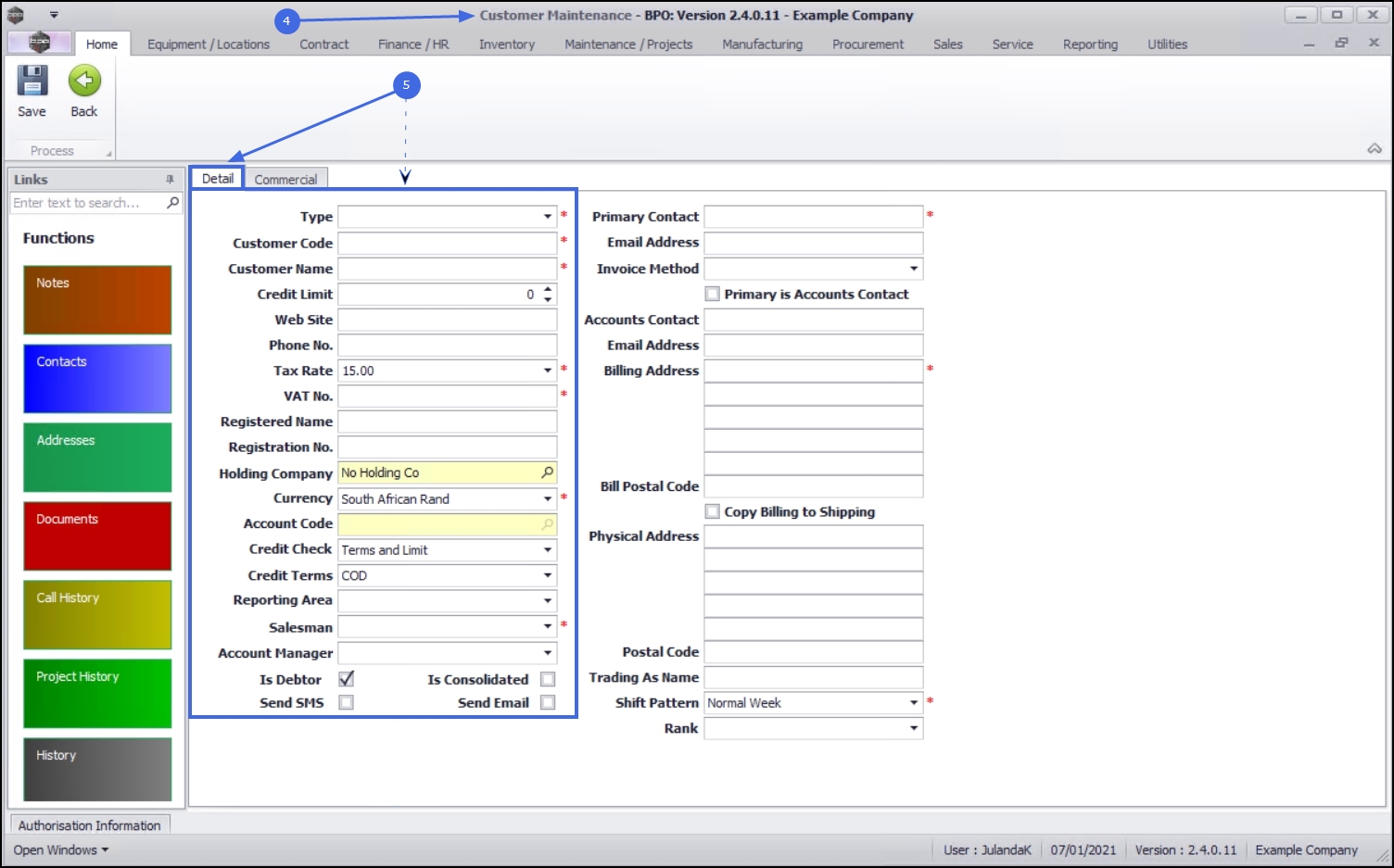 Note 1: The Customer Code is very important because it is linked to Pastel Evolution and all the customer information and history will be linked to this code and not the Customer Name.