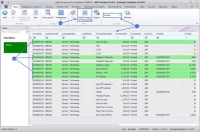 You can send Invoices directly to the Print Queue directly from the Customer screen, instead of having to go to the Print Queue Reprint screen. You can therefore forward a batch of invoices to the customer, dependant on their invoice delivery method, for instance Print, Email or Print/Email.