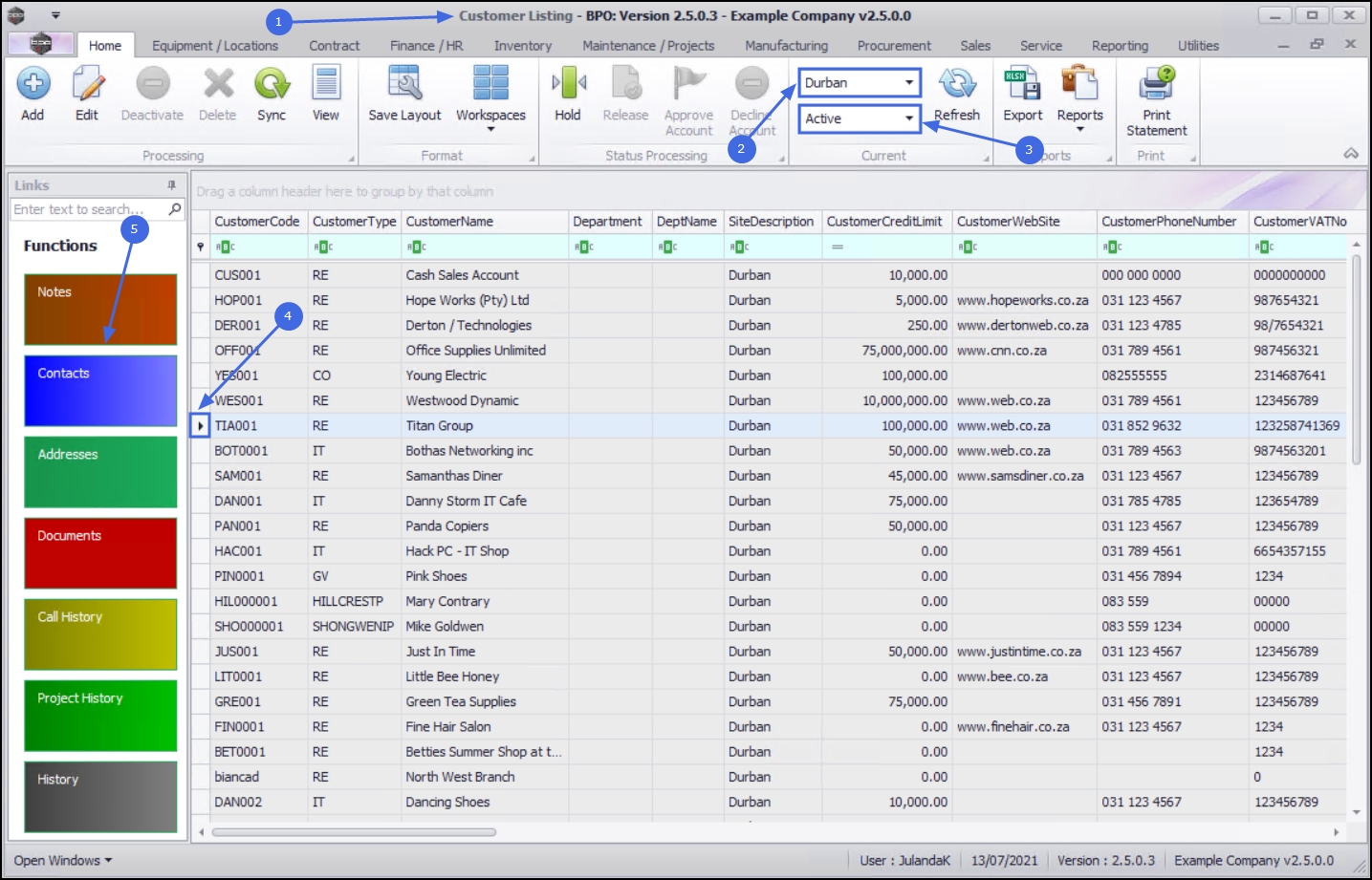 | Ribbon Access: Sales > Customers |