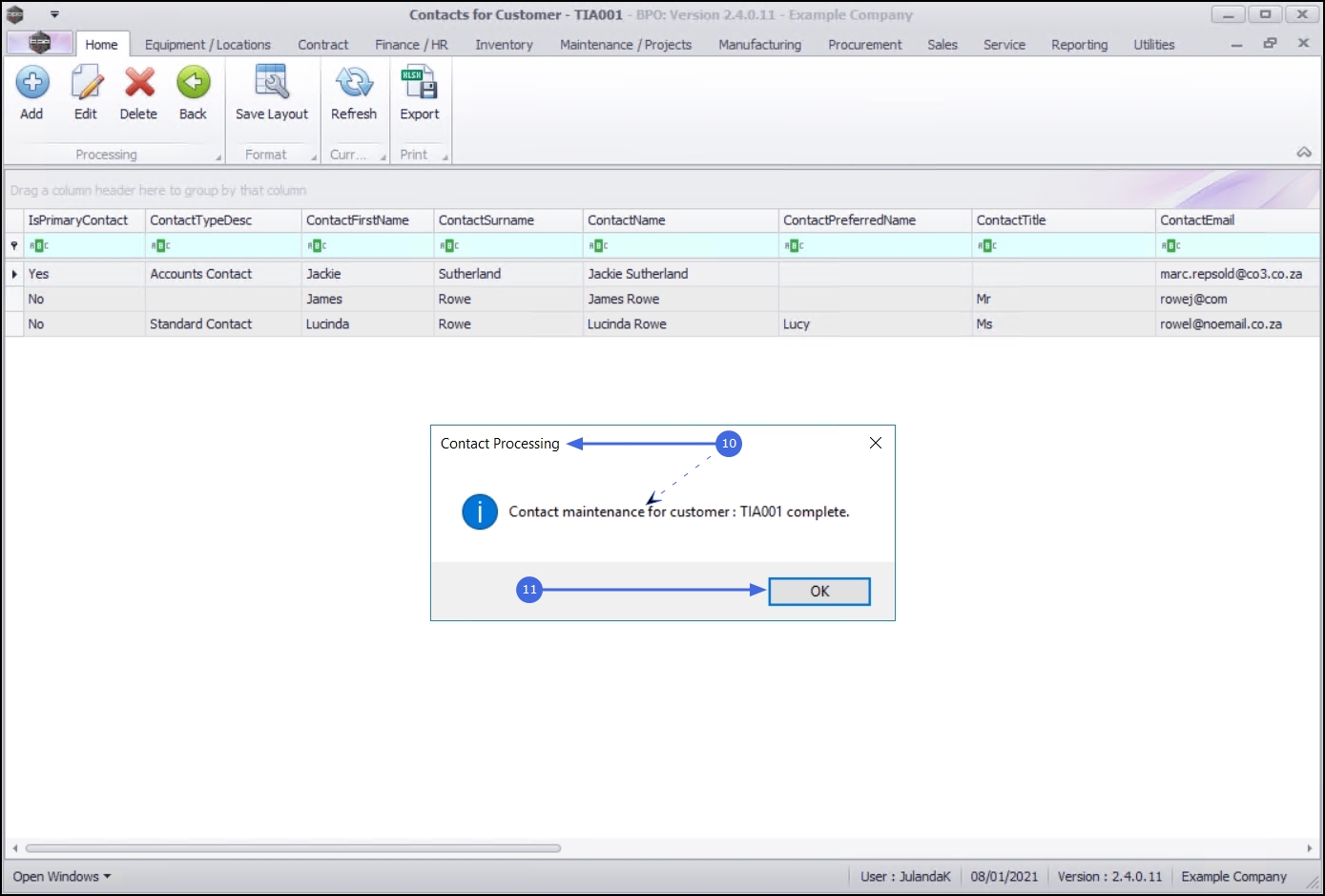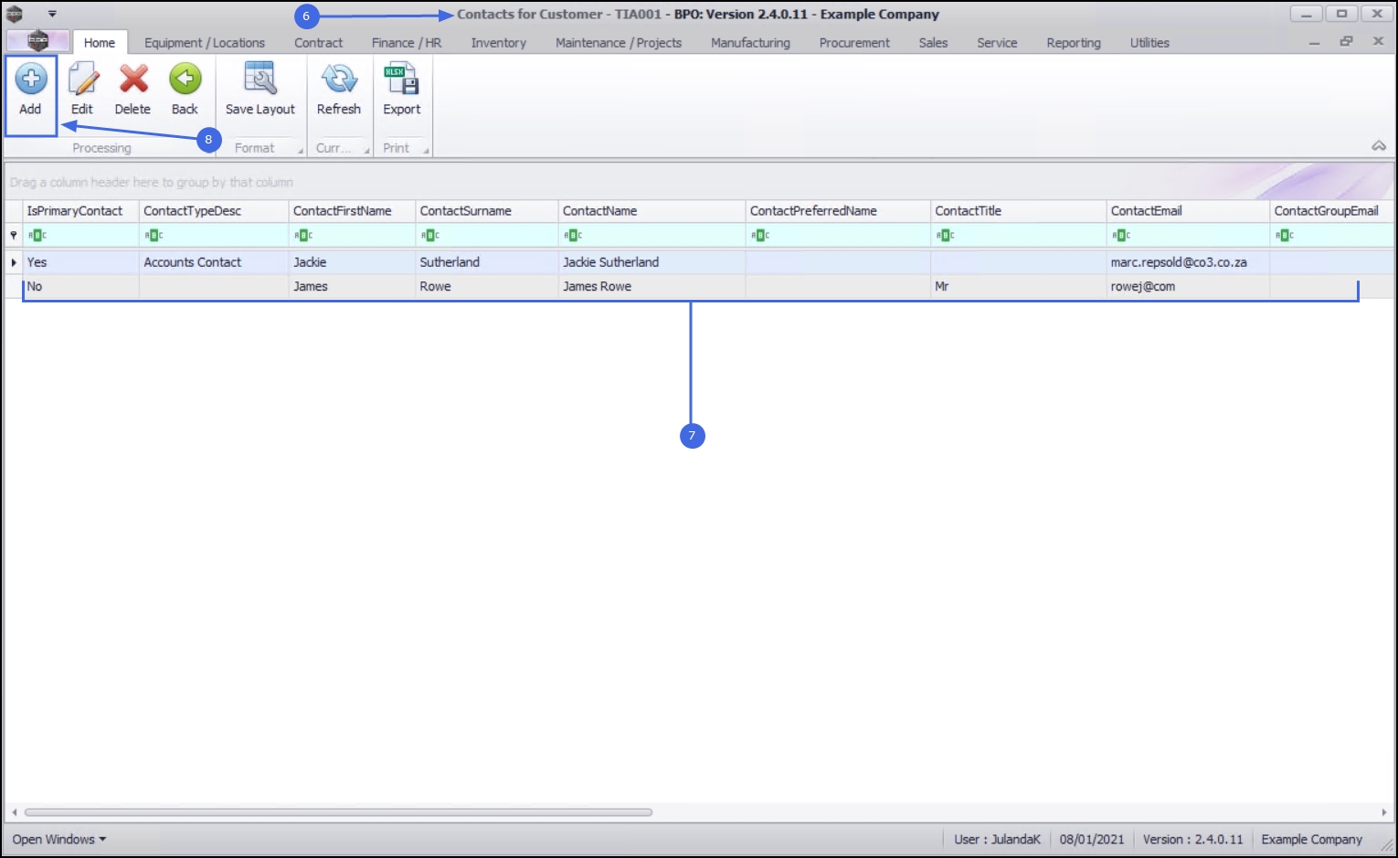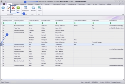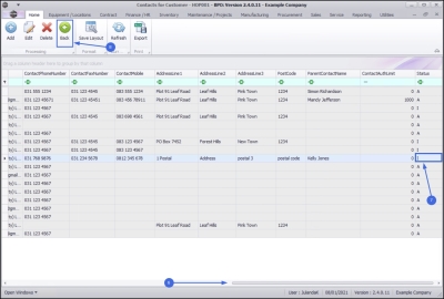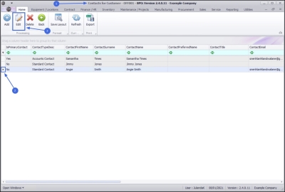 - From the Contacts for Customer - [customer code] screen will be displayed.