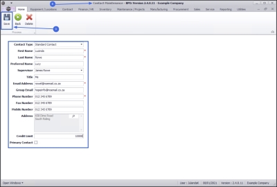 - The Contact Maintenance screen will be displayed.