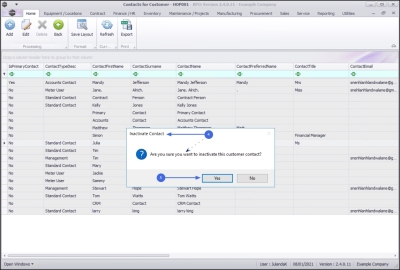 - Are you sure you want to inactivate this customer contact?