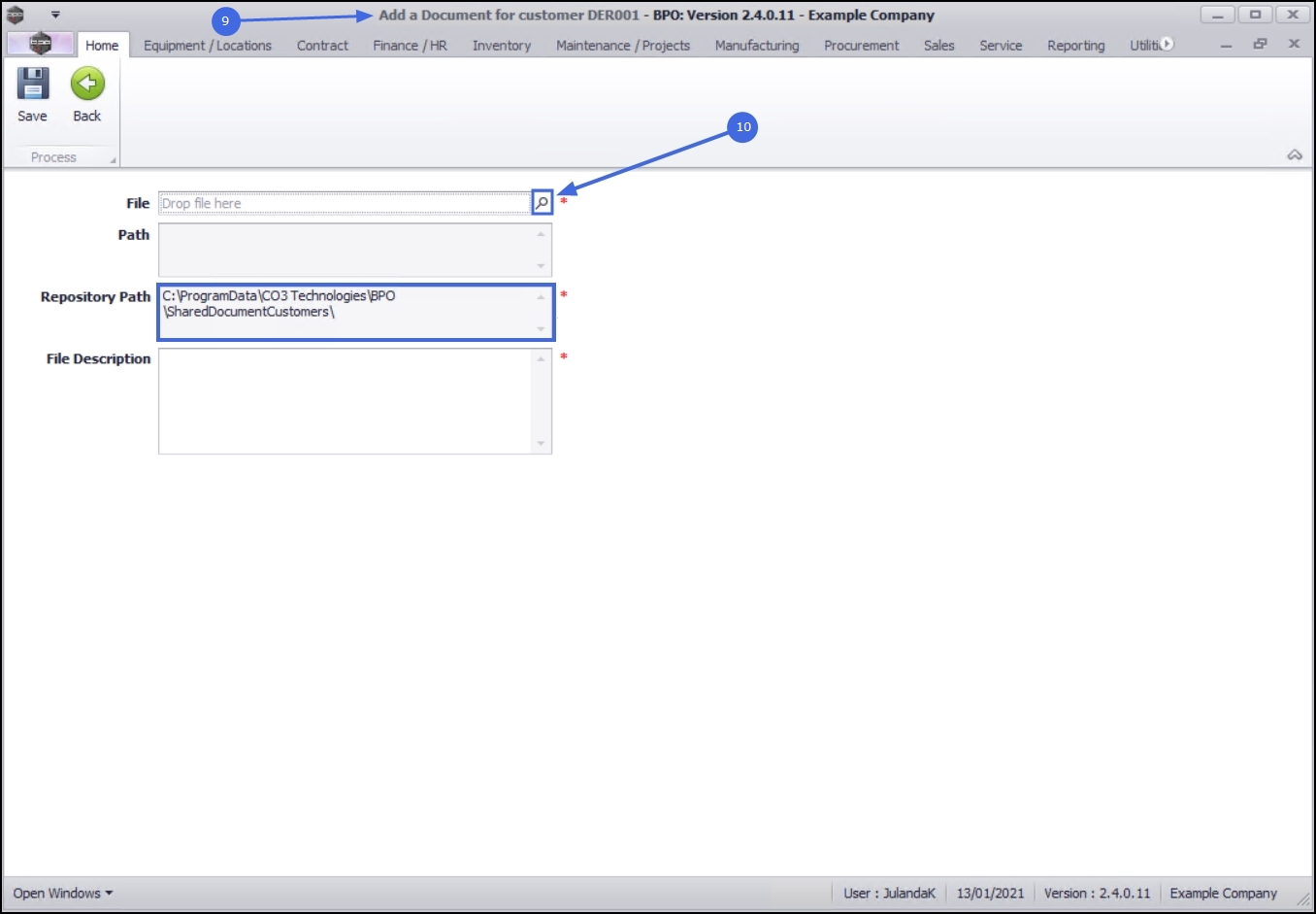 Note that the Repository Path field is populated with the path configured in your Company Configuration.