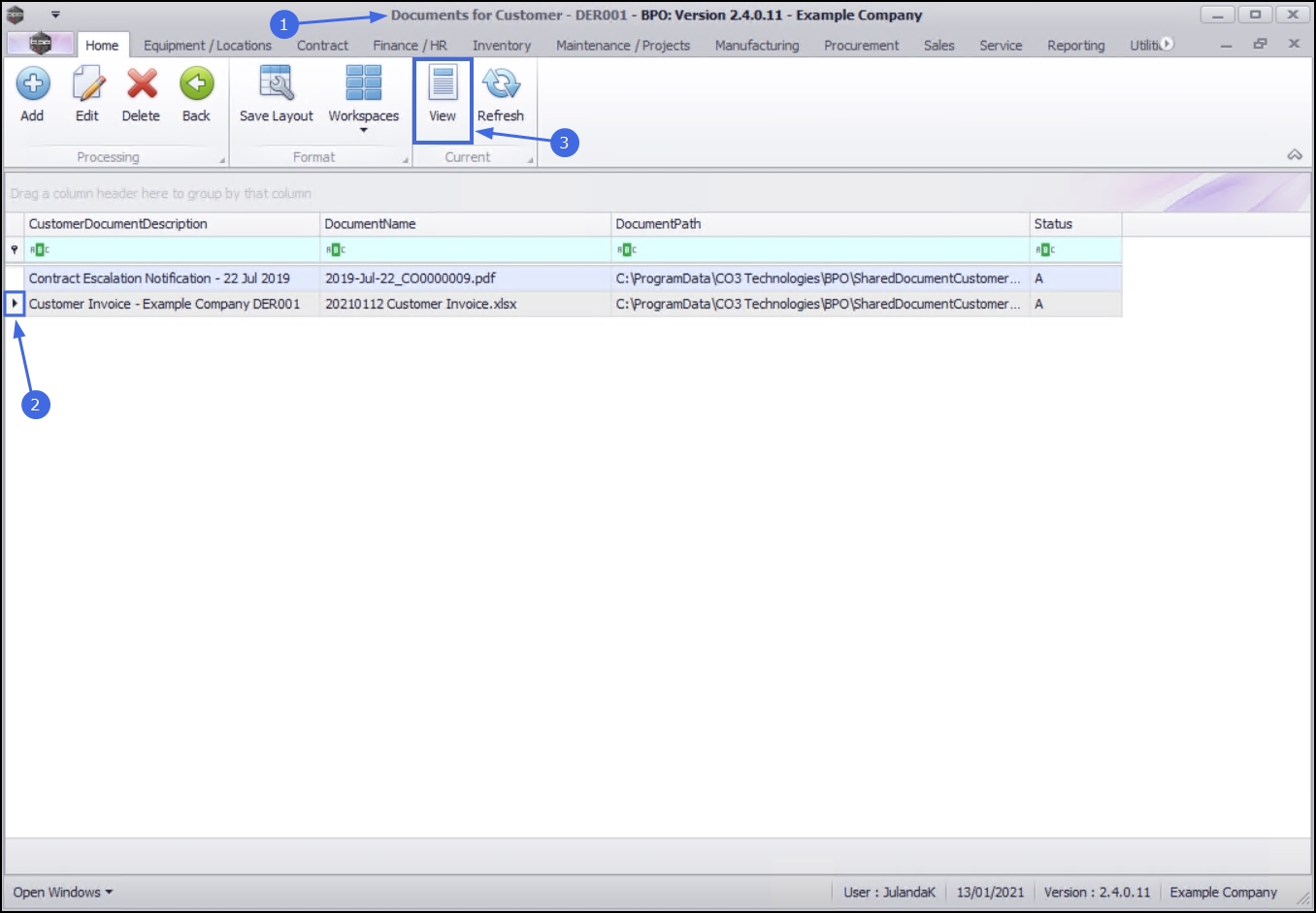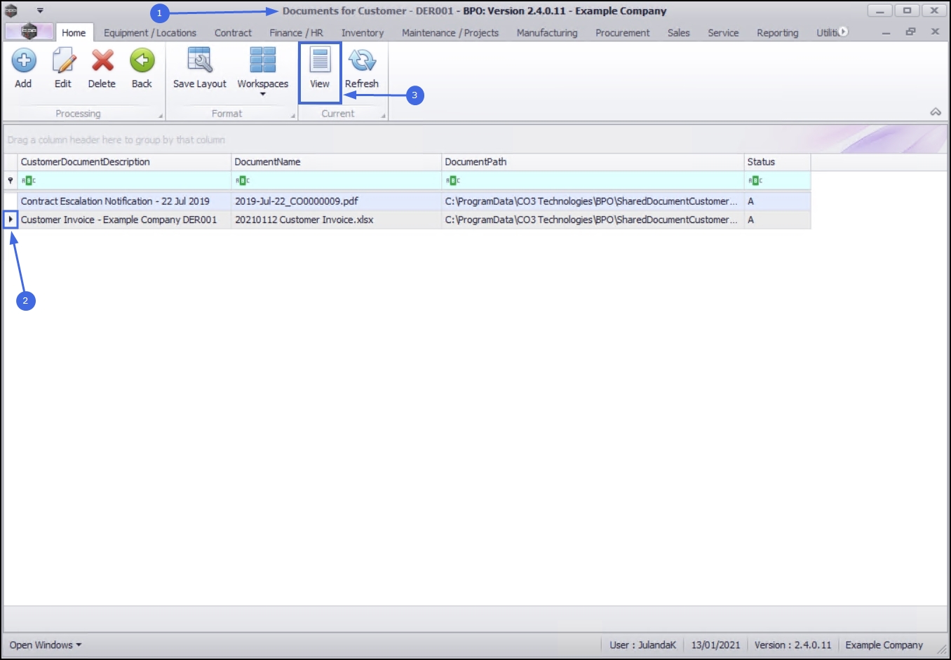 - The Documents for Customer - [customer code] screen will be displayed.