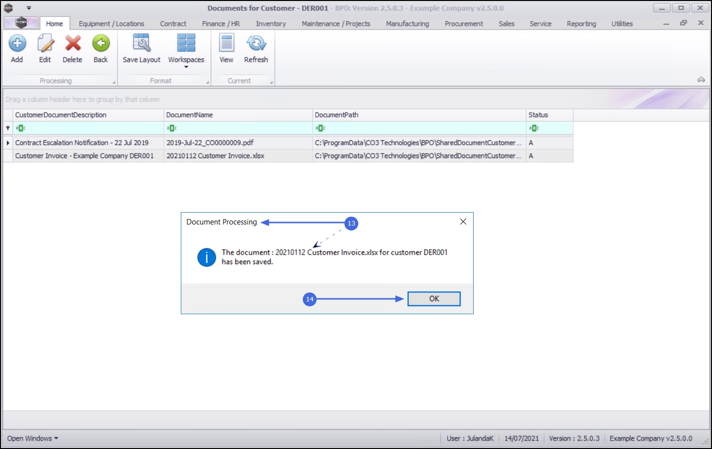 - The document has now been deleted from the Documents for Customer screen.