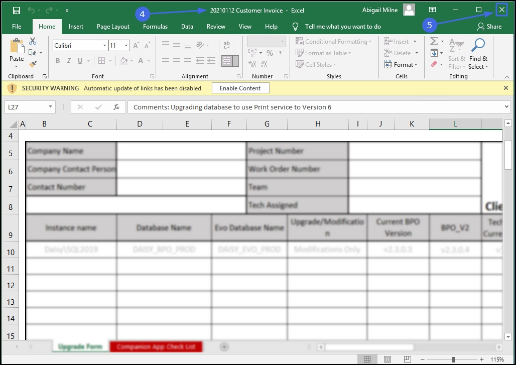 - In this example, an Excel document has opened.
