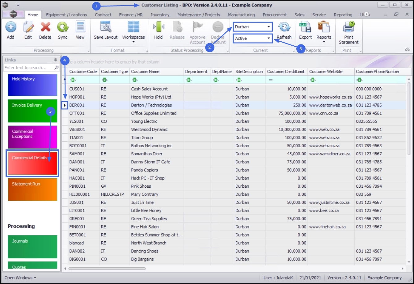 | Ribbon Access: Sales > Customers |