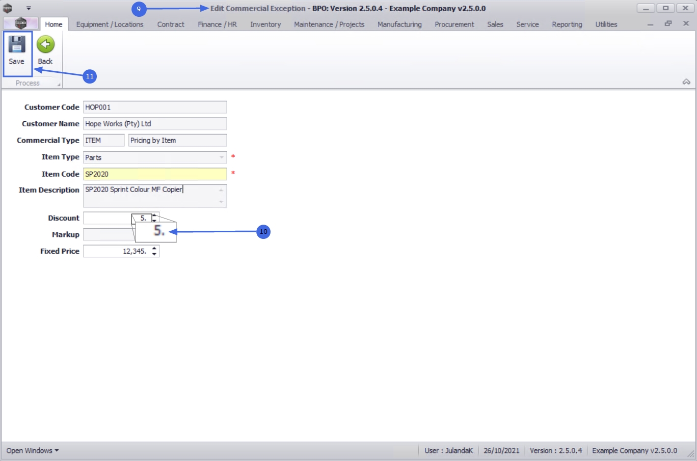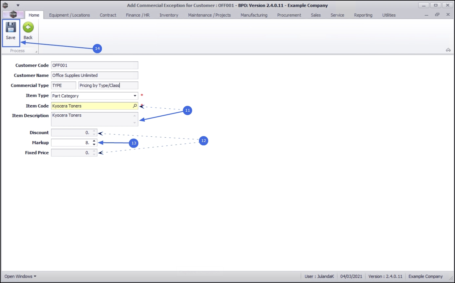 - The Discount and Fixed Price fields cannot be edited as this process is linked to a customer with Pricing By Type/Class commercial.