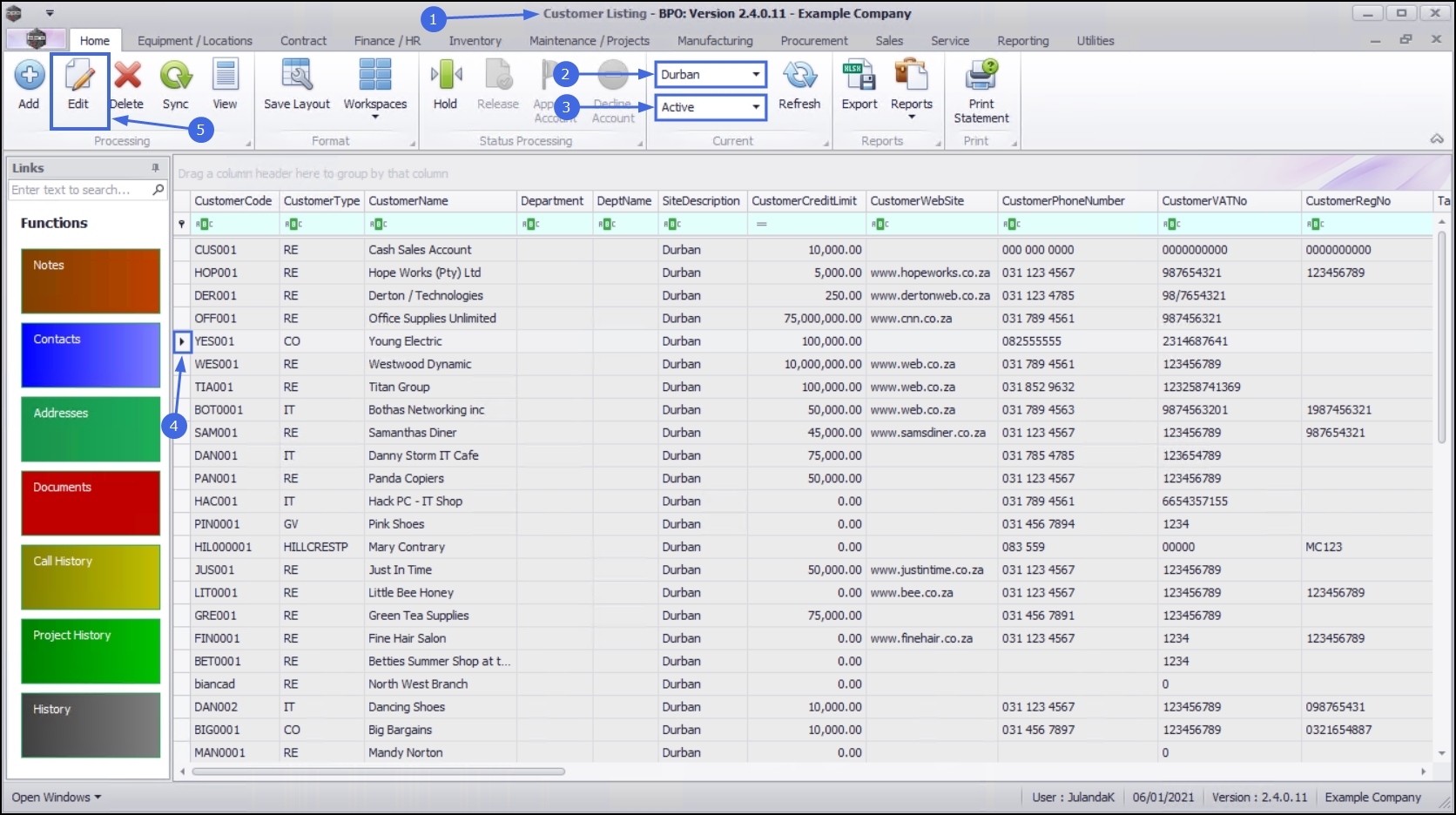 | Ribbon Access: Sales > Customers |
