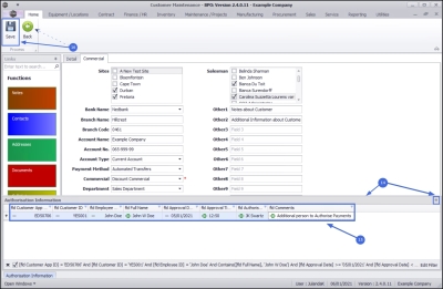 - Add or edit the Sites and Salespersons linked to this customer, as well as the Customer Banking Details, the Payment Method, e.g. Debit Order and the Customer Commercial.
