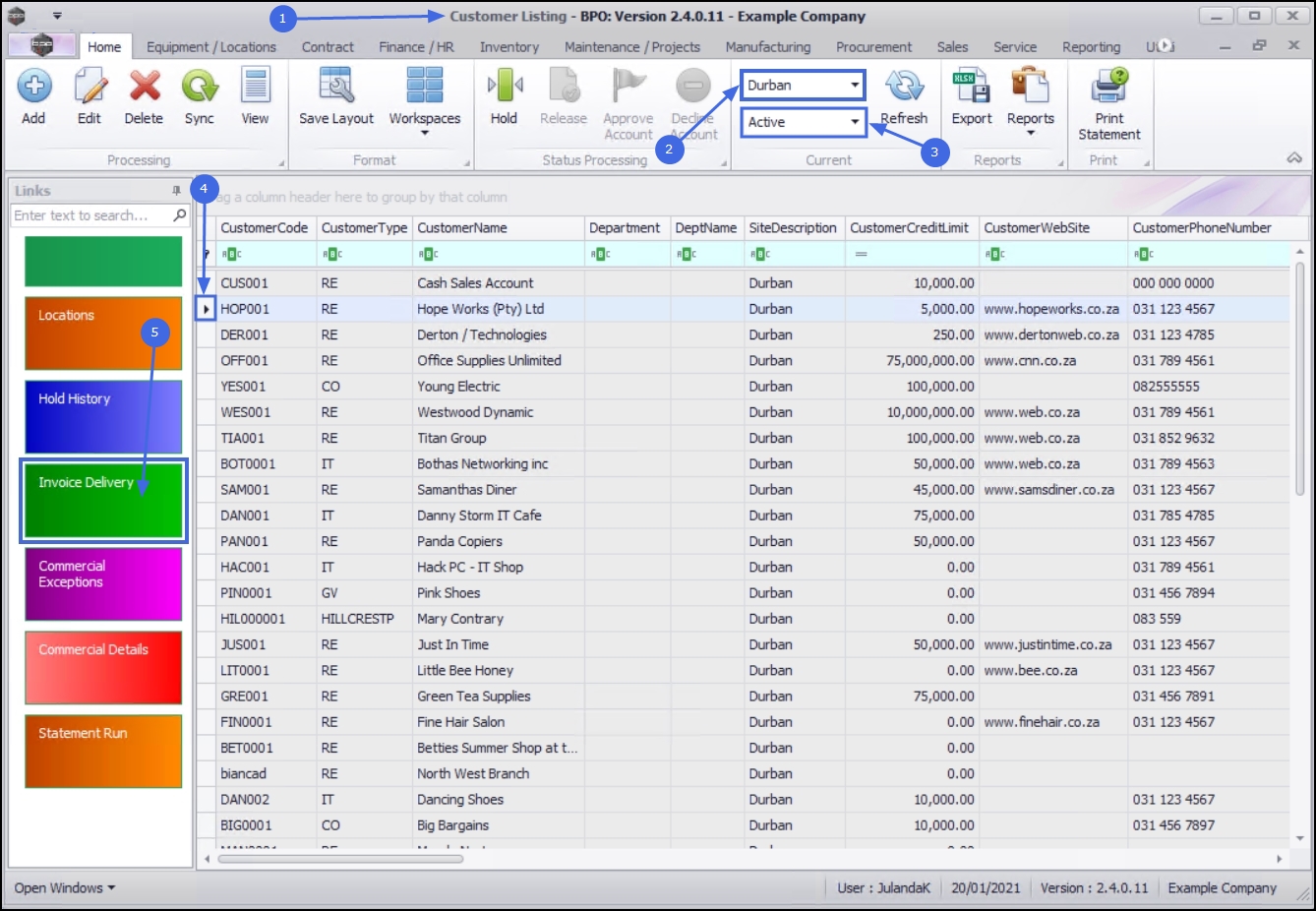 - Select the row of the customer where you wish to add an Invoice Delivery method to.