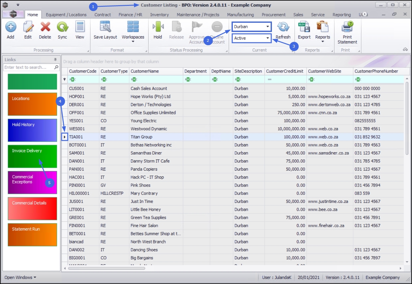 | Ribbon Access: Sales > Customers |