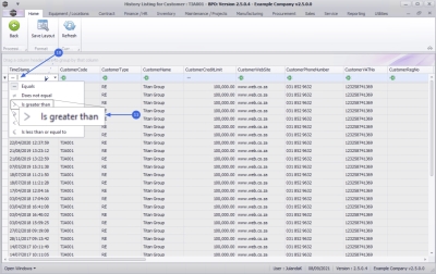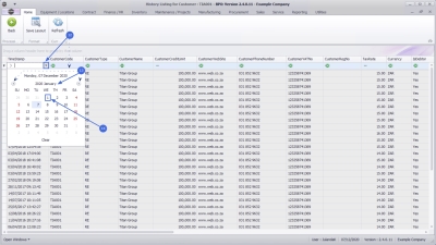 - If you wish to search for a specific period of history for a customer, then you can utilise the filter search row. For a detailed handling of this topic refer to BPO2 Data Grid Filtering. For this example, we will search for all the historical information for 2020.