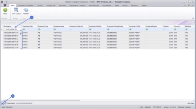 - All historical changes made in the Customer Details or Commercial frames linked to the selected Customer will be listed, with the most recent information at the top of the data grid.