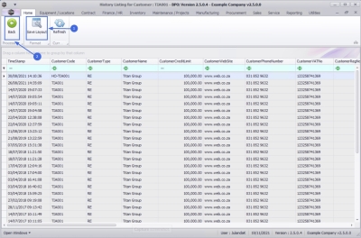 History Listing Ribbon Toolbar