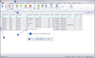 Short cut key: Right click to display the Process menu list. Click on Delete. - When you receive the Confirm delete quote message to confirm;