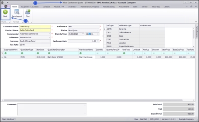 The nature of cloning a quote is to save time when creating new quotes for customers. Using this method, ensures that most of the details of the quote would remain the same. You may wish to edit some of the details, for example, the customer, the discount amount or add items such as a warranty to the quote.