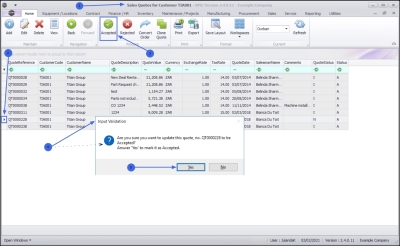 - Are you sure you want to update this quote, no. [ ] to be Accepted? Answer 'Yes' to mark it as Accepted.
