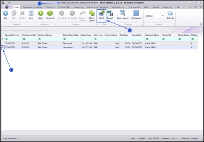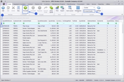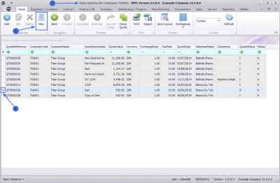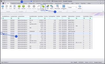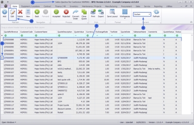 - From the Sales Quotes for Customer [customer code] listing screen,