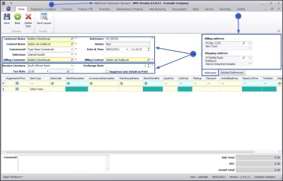 - Confirm the Billing and Shipping Addresses, if these fields were not populated when you entered the Header information.