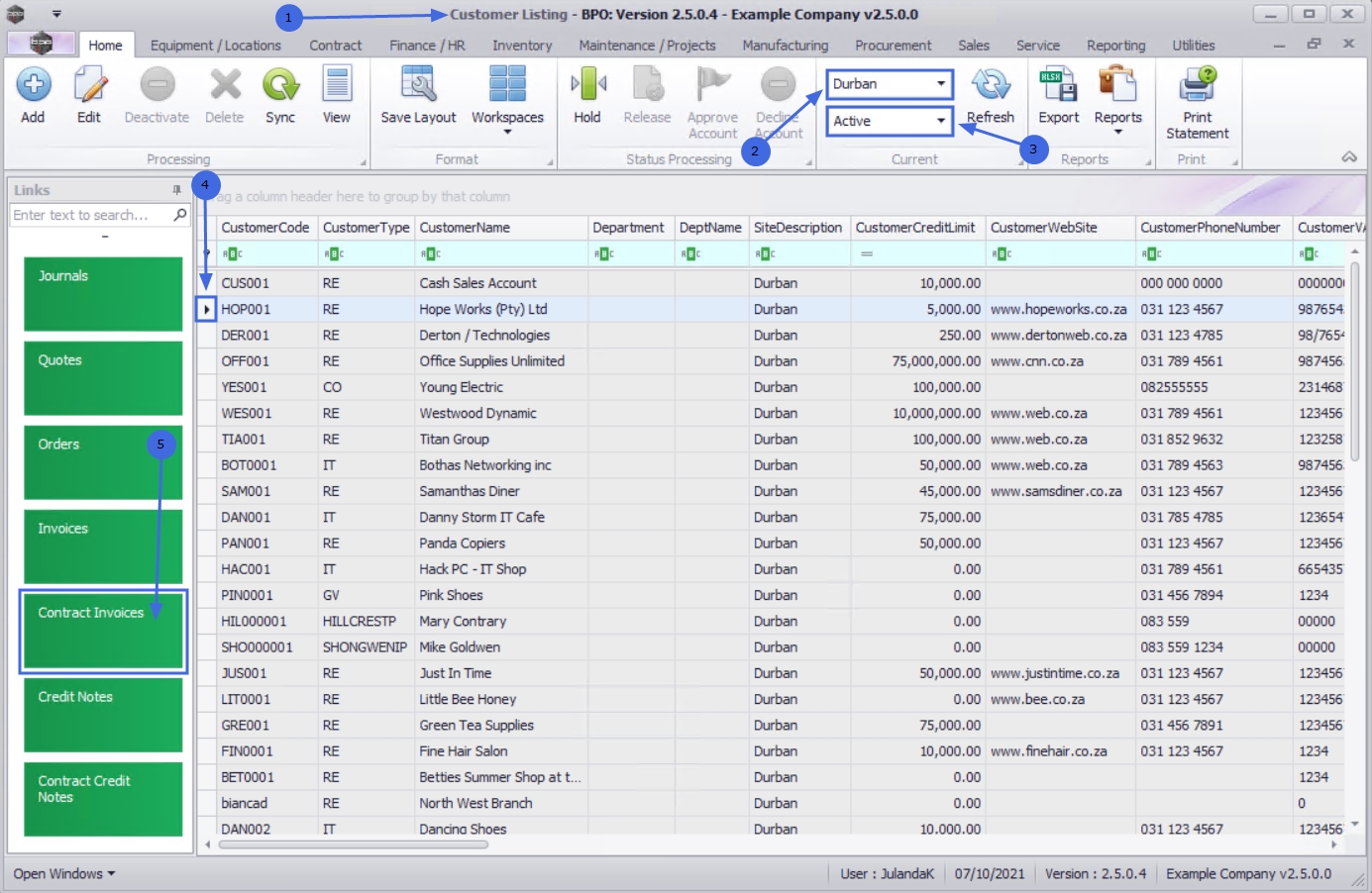 - The Contract Invoices for Customer : [customer code] screen will display.