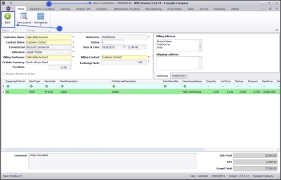 No changes can be made to the information on the Credit note as this is a View only screen. - Click on Back to return to the Sales Quotes for Customer screen.