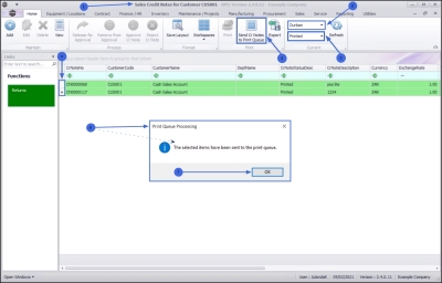You can send Credit Notes directly from the Print Queue from the Sales Credit Notes for Customer screen, instead of going to the Print Queue Reprint screen. This will enable you to forward a batch of credit notes to the customer.