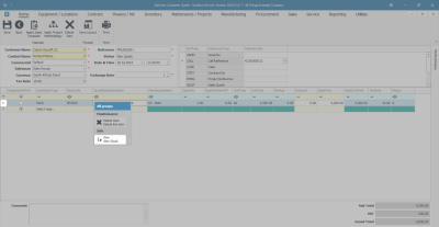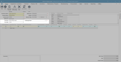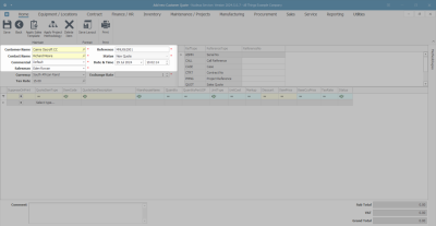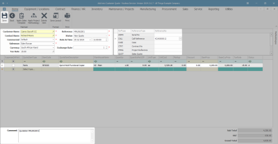 - Reference types that have references linked, will have the reference numbers populated on the screen. For example, if a quote is being raised for a particular call or contract then the call or project reference number will be listed.