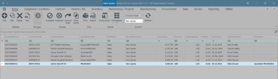 - The Sales Quotes listing screen opens in the N - New Quote Status by default. You can Create a Quote in any Status.