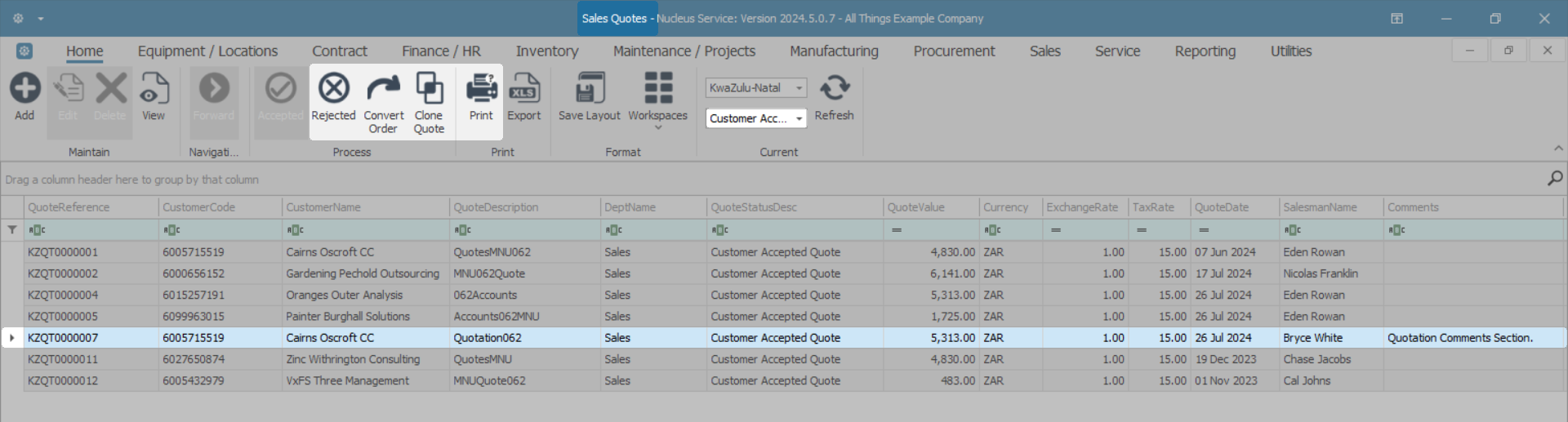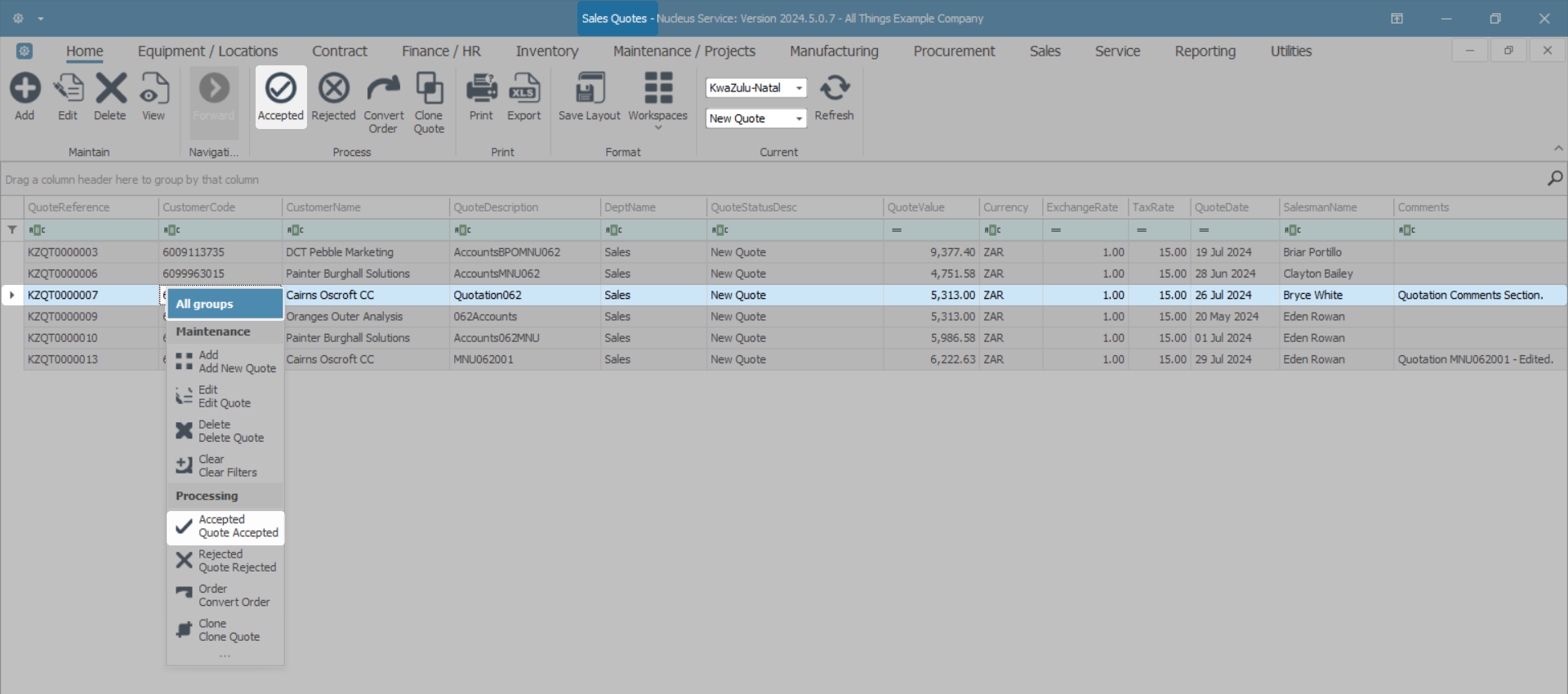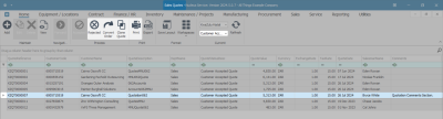 - Select the row of the Quote you wish to convert to accepted.