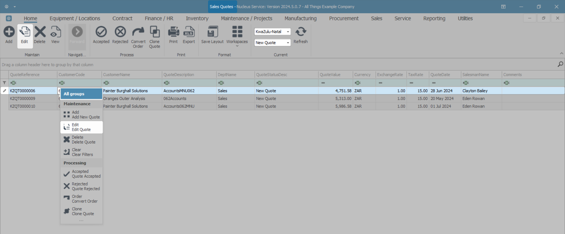 - You may now proceed to edit Quote Item(s) or Delete Quote Item(s) as required.