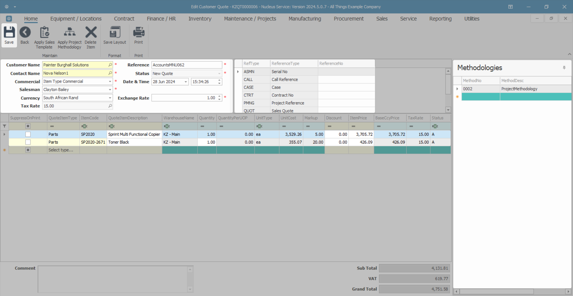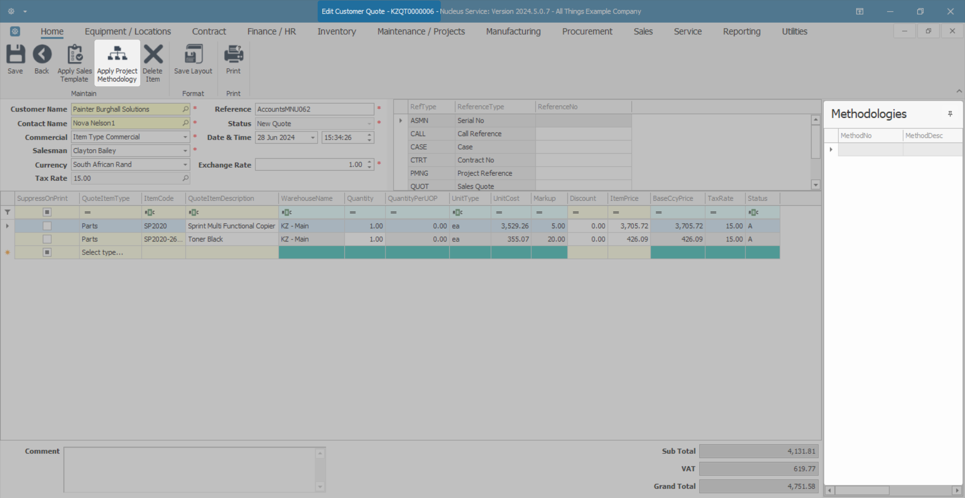 - The Quote will be updated and the tasks defined by the methodology will be appended to any existing quote items that have already been created.