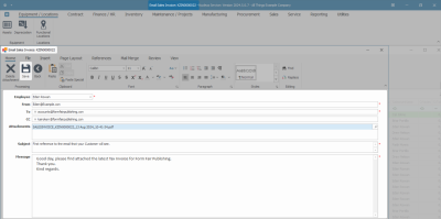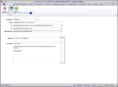 When using the 'Email' option to send a Sales Invoice, note that it will be emailed via the Nucleus Service Email Service on the server and not from Microsoft Outlook on your desktop.