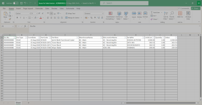 - Click on Export to export the Issues for Sales Invoice : KZIN[ ] to an Excel Spreadsheet.