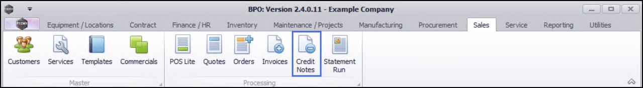 | Ribbon Access: Sales > Credit Notes |
