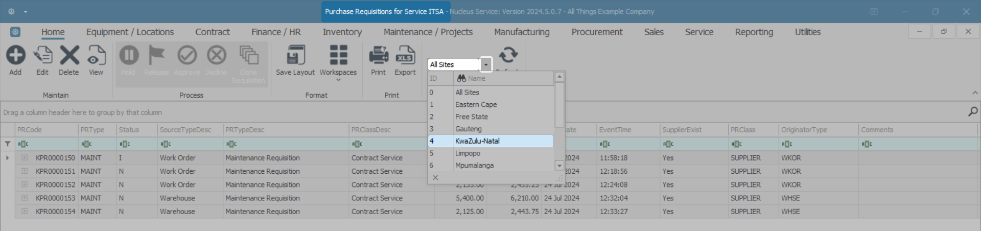 - The Purchase Requisitions for Service [ ] list screen will be displayed.