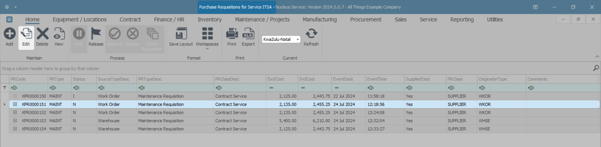 - Select the row of the Purchase Requisition you wish to edit.