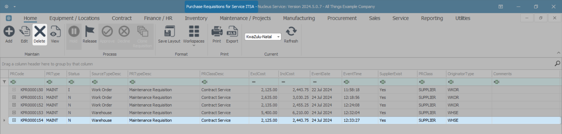 Delete a Purchase Requisition