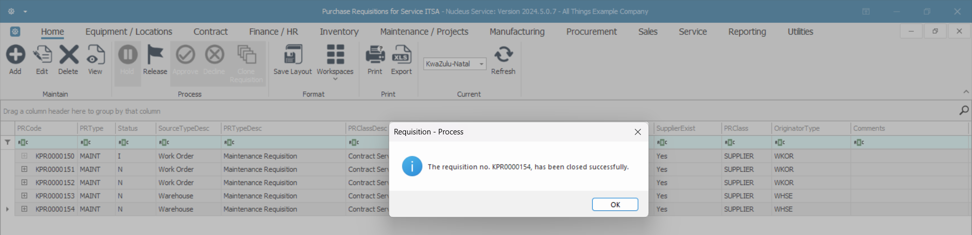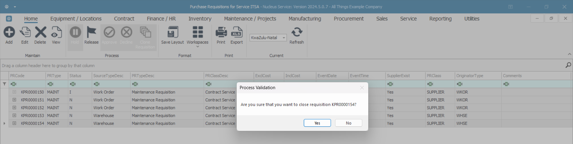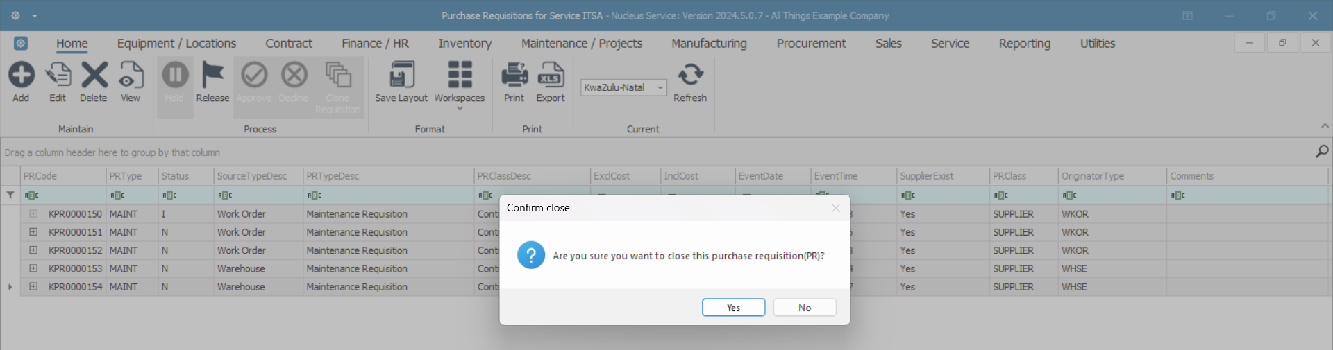 - Are you sure you want to close this purchase requisition(PR)?