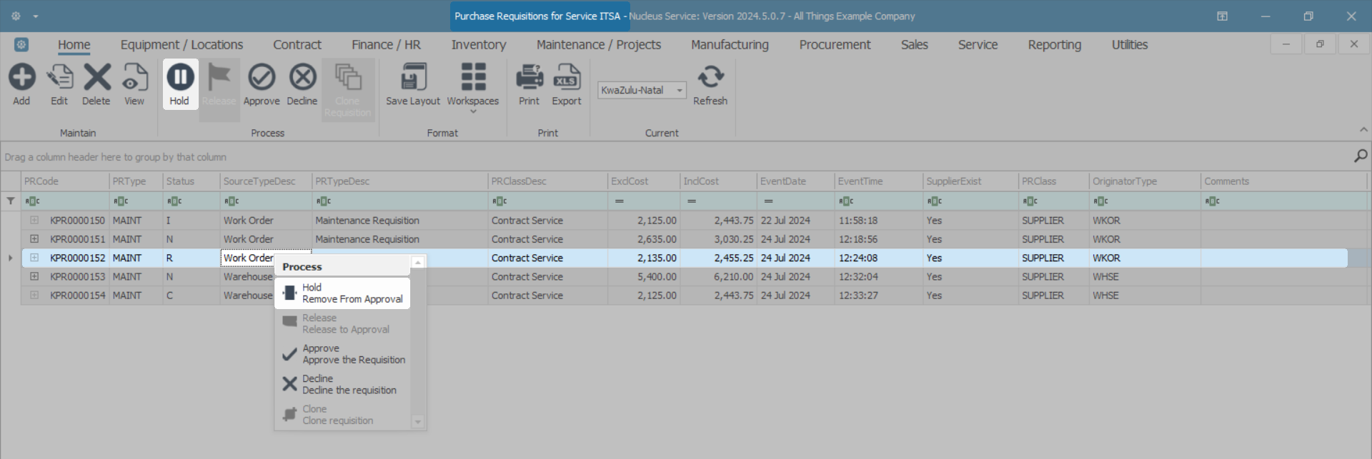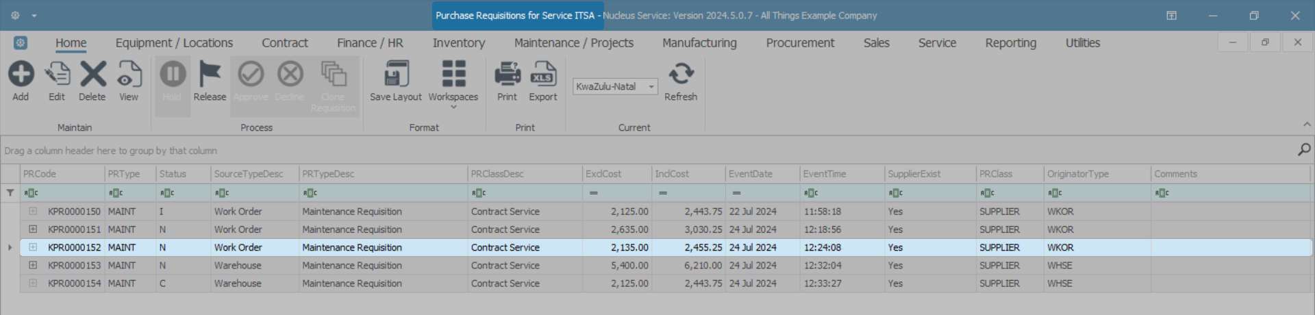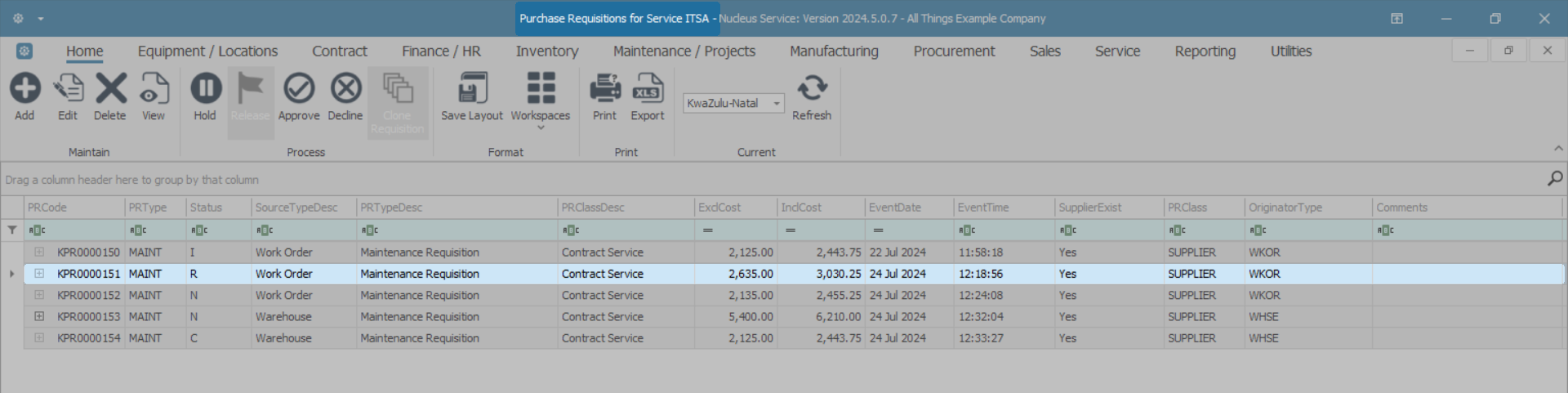 A Purchase Requisition can only be released for approval when the total value is more than R0, the items have a quantity greater than 0, and all parts have a supplier cost linked.