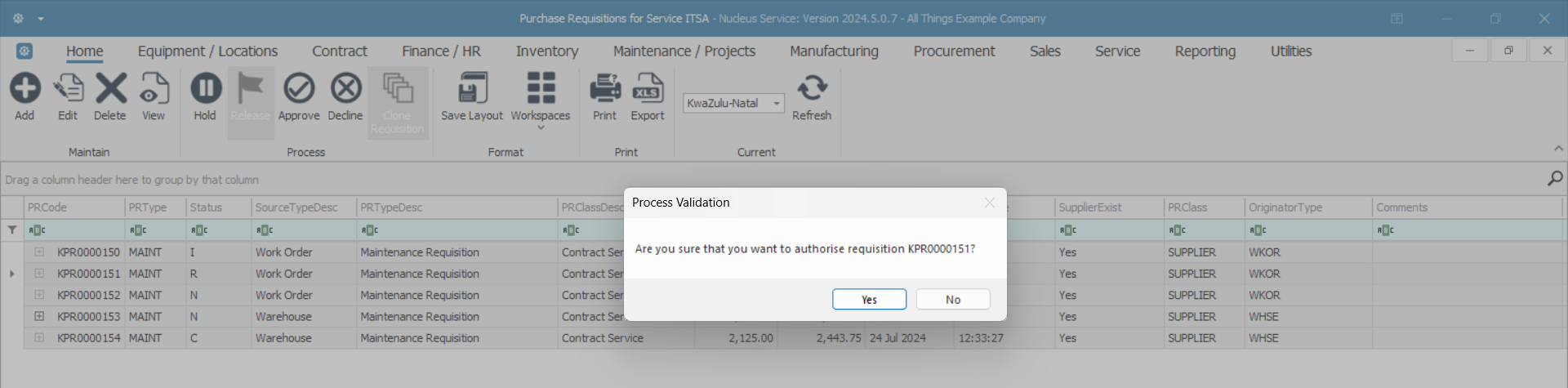 - Are you sure that you want to authorise requisition PR[ ]?
