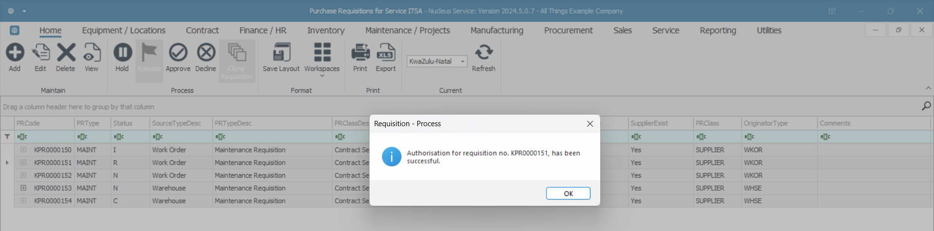 - Authorisation for requisition no. [ ], has been successful.