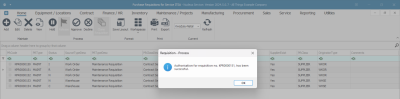 - Next, the Requisition - Process message will inform you that -