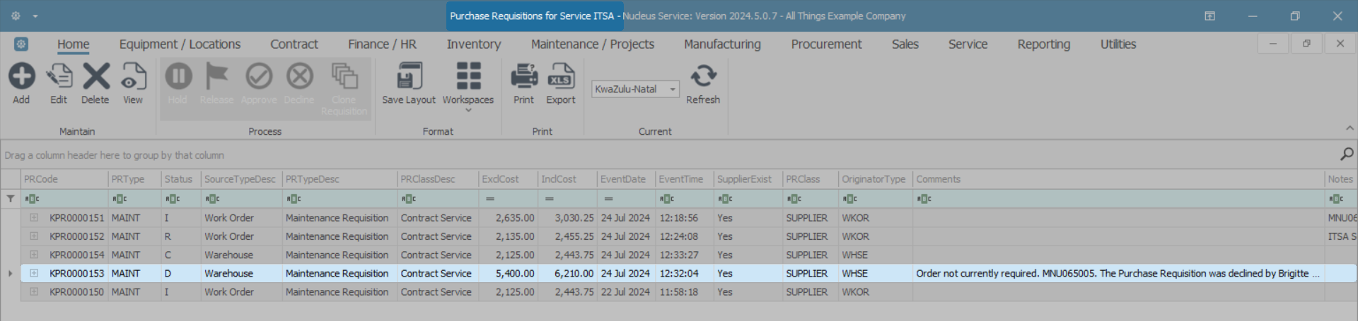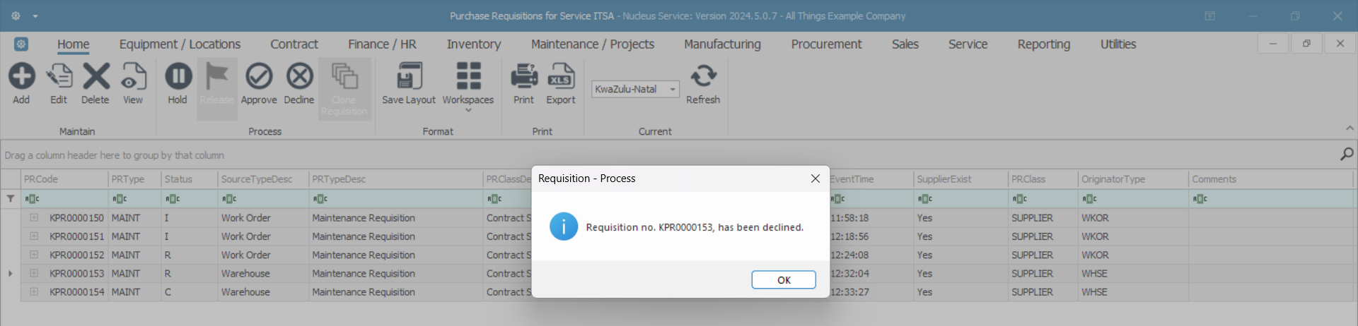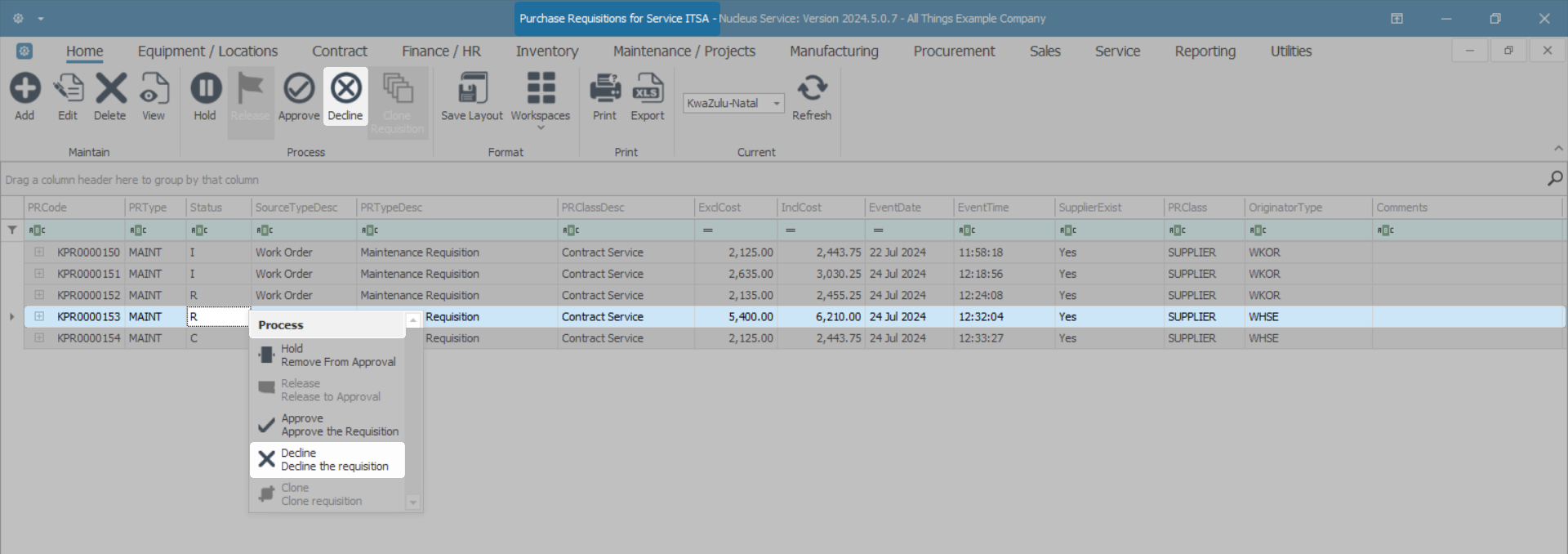 Decline a Purchase Requisition