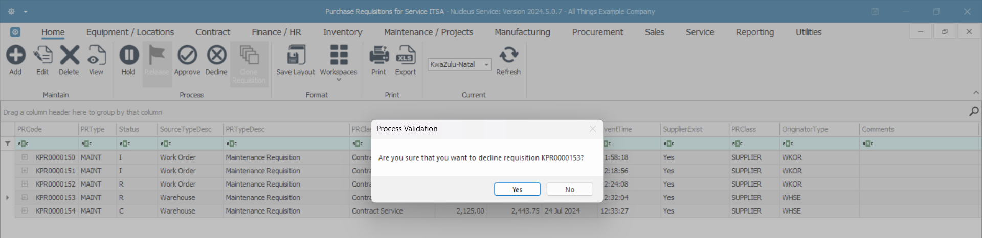 - Are you sure that you want to decline requisition [ ]?