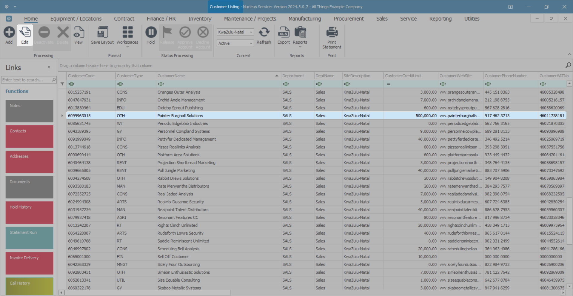 - The Customer Maintenance screen will display.