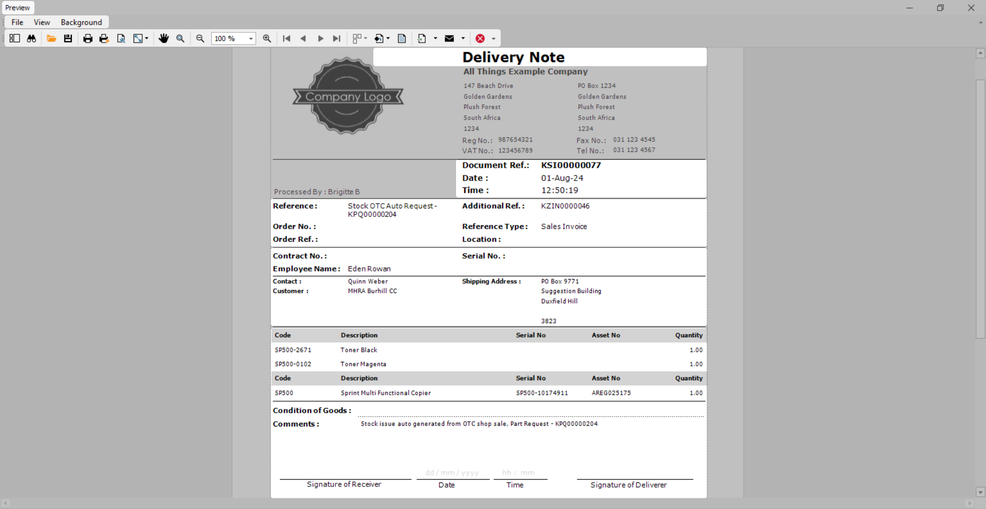 - If you have the POSPrintDeliveryNote flag enabled, the Delivery Note Preview will display.
