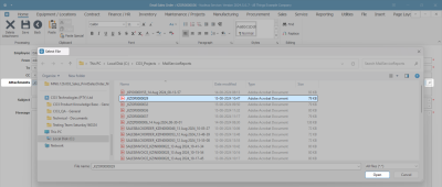 - To add additional documents to be emailed, click on the search button in the Attachments field to display the Select File screen.