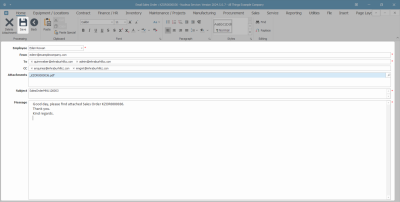 When using the Email option to send a Sales Order, please note that it will be mailed via the Nucleus Service Email Service on the server and not from your own MS Outlook.